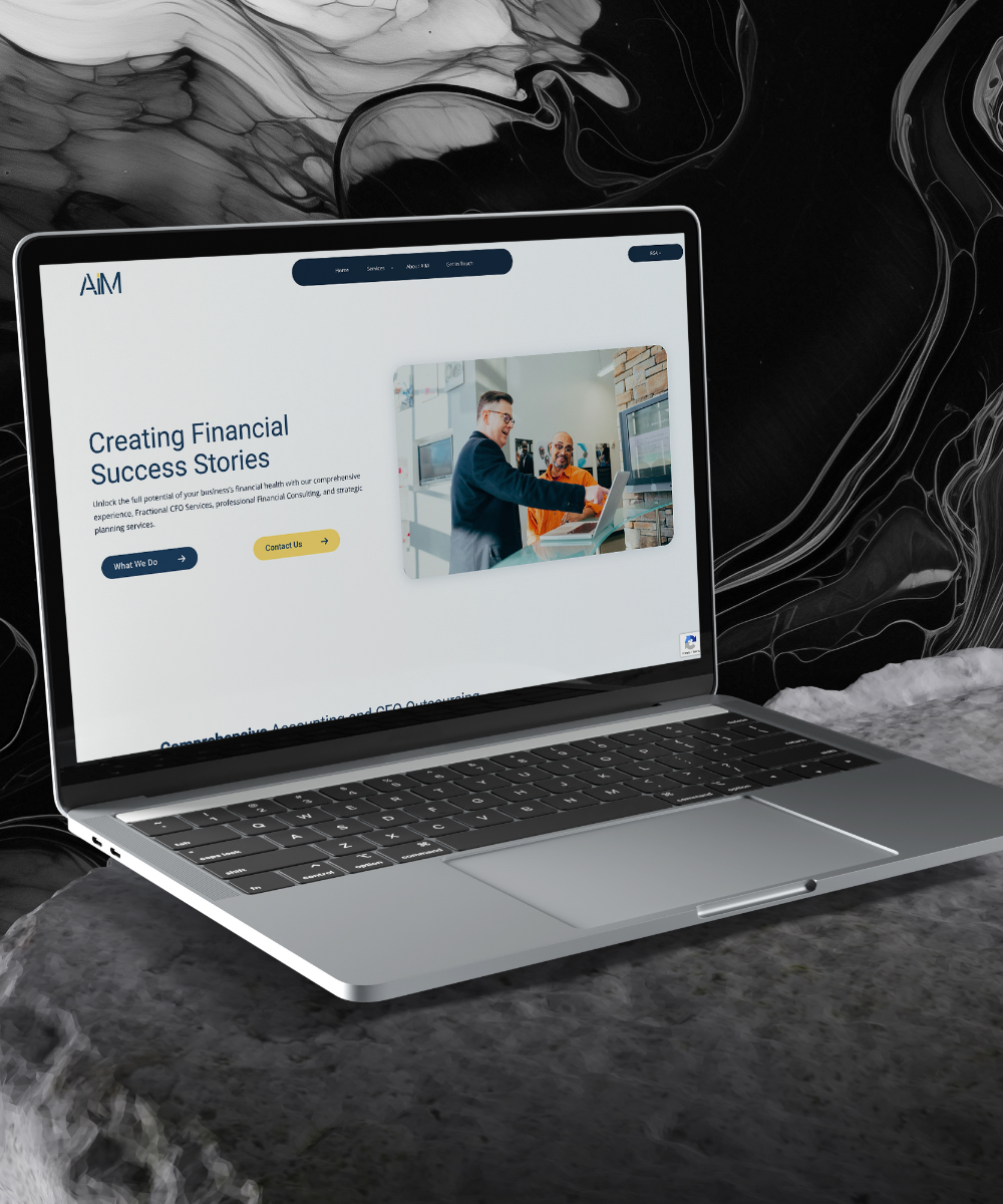 AIM is a cfo outsourcing and accounting firm operating in south africa and united states. We partnered with AIM and was tasked with re-branding, new website and social media strategy. The project involved developing a new brand identity (logo, color palette, typography), designing a responsive website with sections like Landing Page, About Us, and Services, and establishing cohesive social media profiles on LinkedIn and Facebook.